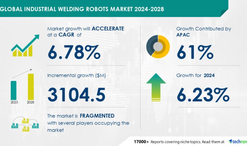 NEW YORK, July 9, 2024 /PRNewswire/ — The worldwide commercial welding robots marketplace is witnessing vital enlargement, pushed through the expanding adoption of commercial robots, specifically within the Asia-Pacific area. This enlargement is fueled through the emergence of collaborative arc welding robots, which can be bettering operational potency. In spite of those developments, demanding situations reminiscent of operational complexities persist. Industries using robot welding come with automobile, production, development, and aerospace. Key avid gamers on this marketplace come with ABB Ltd., FANUC Corp., Kawasaki Weighty Industries Ltd., and The Lincoln Electrical Co., amongst others.