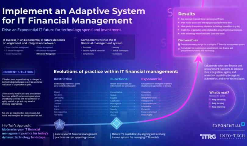 “The way IT financial management is commonly practiced in many organizations is ad hoc and opaque, leaving IT and other decision-makers unable to quickly and appropriately respond to changing conditions and emerging opportunities,” explains Perrier. “To keep pace with a highly dynamic future that Info-Tech calls Exponential IT, most organizations will need to reinvent their approach to IT financial management so that it can operate with agility and confidence.”