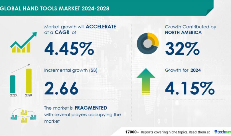 NEW YORK, July 12, 2024 /PRNewswire/ — The worldwide hand gear marketplace measurement is estimated to develop by means of USD 2.66 billion from 2024-2028, in keeping with Technavio. The marketplace is estimated to develop at a CAGR of over 4.45% right through the forecast length. Plenty call for for hand gear from growing economies is riding marketplace expansion, with a pattern in opposition to creation of ergonomically designed hand gear. Alternatively, fluctuating uncooked subject material costs of hand gear poses a problem. Key marketplace gamers come with Akar Auto Industries Ltd., Apex Software Team LLC, Cementex Merchandise Inc., Channellock Inc., Emerson Electrical Co., Estwing Production Co., IDEAL Industries Inc, Ingersoll Rand Inc., JCBL Team, Klein Equipment Inc., Malco Equipment Inc., Martin Sprocket and Equipment Inc., Snap On Inc., STAHLWILLE Eduard Wille GmbH and Co. KG, Stanley Lightless and Decker Inc., Swanson Software Co. Inc., Taparia Equipment Ltd., Techtronic Industries Co. Ltd., The L.S. Starrett Co., Toughbuilt Industries Inc., TOYA S.A., Vaughan Production, and Wera.