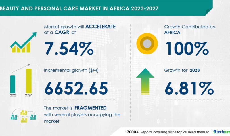 NEW YORK, July 15, 2024 /PRNewswire/ — The beauty and personal care market size in Africa size is estimated to grow by USD 6.65 billion from 2023-2027, according to Technavio. The market is estimated to grow at a CAGR of almost 7.54% during the forecast period. Rising demand for anti-aging products is driving market growth, with a trend towards emergence of beauty and personal care products with natural ingredients. However, adverse health effects of synthetic chemicals used in beauty and personal care products poses a challenge. Key market players include Adidas AG, Africology Pty Ltd., Amka Products Pty Ltd., Amway Corp., Beiersdorf AG, Chanel Ltd., Christian Dior SE, Church and Dwight Co. Inc., Colgate Palmolive Co., Coty Inc., Edgewell Personal Care Co., Esse Skincare, Godrej Consumer Products Ltd., House of Tara International, Johnson and Johnson, Kering SA, LOreal SA, Lulu and Marula Proprietary Ltd., Natura and Co Holding SA, Oriflame Cosmetics S.A., Pauline Cosmetics Ltd., Reckitt Benckiser Group Plc, Revlon Inc., The Estee Lauder Companies Inc., The Procter and Gamble Co., Unilever PLC, Zaron Cosmetics and Beauty, and Tiger Brands Ltd..