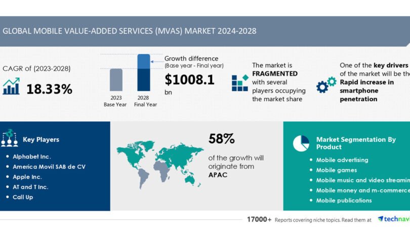 Cell Price-Added Products and services (MVAS) Marketplace dimension is ready to develop by means of USD 1.00 trillion from 2024-2028, Speedy build up in smartphone penetration to spice up the marketplace enlargement, Technavio