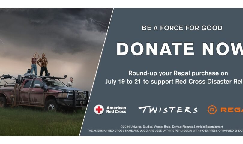 “Regal is proud to partner with Universal Pictures and the American Red Cross to support the relief efforts from severe weather events wherever they may occur,” said Richard Grover, Head of Marketing at Regal. “The release of Twisters will give our employees and guests an opportunity to assist communities who may face the real-world consequences of a similarly devastating storm.”