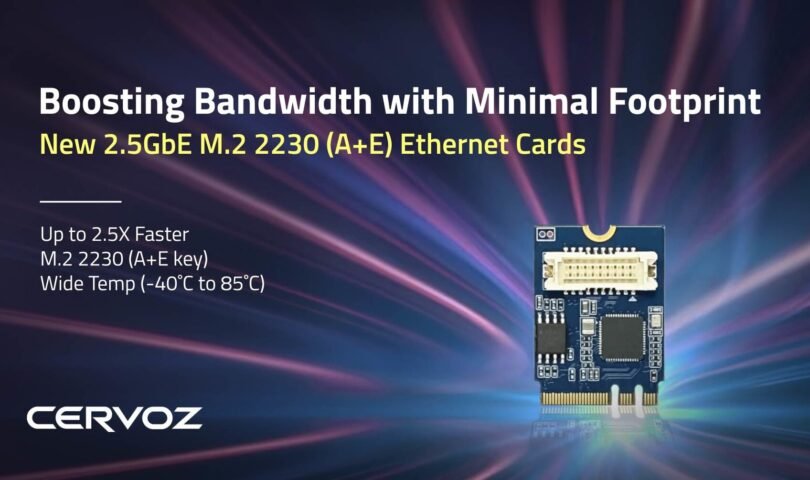 TAIPEI, 15 de julio de 2024 /PRNewswire/ — A medida que el streaming 4K y las aplicaciones IoT ponen a prueba las redes Gigabit tradicionales, Cervoz, líder en almacenamiento, memoria y tarjetas de expansión de calidad industrial, presenta su tarjeta de Ethernet 2.5GbE M.2 2230 (teclas A+E) PCIe. De tamaño extremadamente compacto, esta solución ofrece potentes velocidades hasta 2,5 veces más rápidas que las redes Gigabit estándar, proporcionando una conectividad sin fisuras y una latencia reducida para demandas de gran ancho de banda como streaming 4K y sistemas NAS de alto rendimiento.
