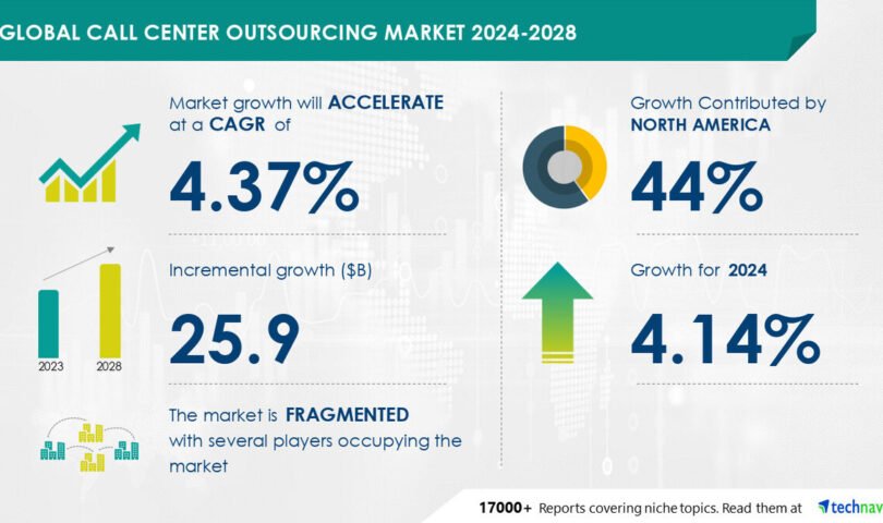NEW YORK, July 18, 2024 /PRNewswire/ — The worldwide name heart outsourcing marketplace measurement is estimated to develop through USD 25.9 billion from 2024-2028, in line with Technavio. The marketplace is estimated to develop at a CAGR of over 4.37% throughout the forecast duration. Stand of rising nations as name heart locations is riding marketplace enlargement, with a pattern against building up in m and a and strategic alliances amongst distributors. Alternatively, expanding charge of name heart outsourcing products and services poses a problem. Key marketplace gamers come with 247.ai Inc., Alorica Inc., Atento SA, Bertelsmann SE and Co. KGaA, Laptop Generated Answers Inc., Continuum World Answers LLC, Datacom Crew Ltd., DiRAD Applied sciences Inc., Epicenter Applied sciences Pvt. Ltd., Five9 Inc., Helpware Inc., Hinduja World Answers Ltd., Infosys Ltd., Serco Crew Plc, StarTek Inc., Sutherland World Services and products Inc., Tata Consultancy Services and products Ltd., Teleperformance SE, Transcom Conserving AB, and XACT Acquisition LLC.