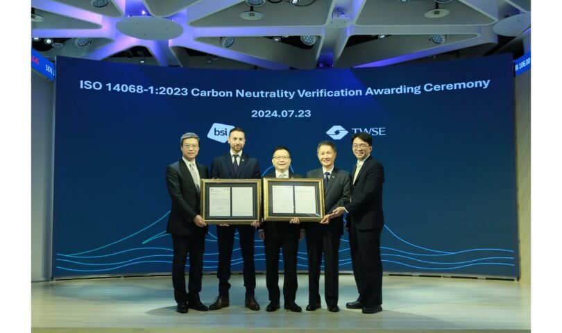 TAIPEI, 24.Juli 2024 /PRNewswire/ — Die taiwanesische Börse (Taiwan Stock Exchange, TWSE) gab heute bekannt, dass sie als erste Börse der Welt von der British Standards Institution (BSI) nach einem strengen Bewertungs- und Auditverfahren das ISO 14068-1:2023-Zertifikat für Kohlenstoffneutralität erhalten hat. Diese Auszeichnung ist nicht nur ein Zeichen für die Fortschritte der TWSE im Bereich des Umweltschutzes und der nachhaltigen Entwicklung, sondern unterstreicht auch ihre führende Rolle bei globalen Nachhaltigkeitsinitiativen.