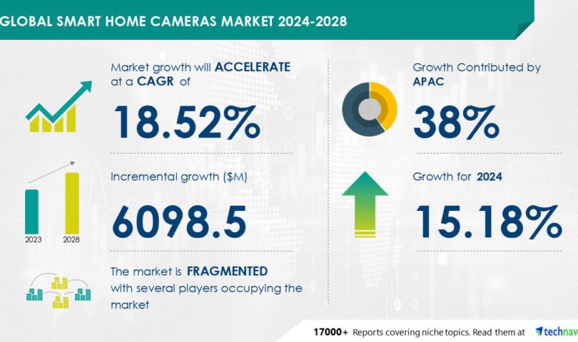 NEW YORK, July 26, 2024 /PRNewswire/ — The global smart home cameras market size is estimated to grow by USD 6.09 billion from 2024-2028, according to Technavio. The market is estimated to grow at a CAGR of 18.52% during the forecast period. Innovation and portfolio extension leading to premiumization of products is driving market growth, with a trend towards distribution channel expansion strategy. However, presence of counterfeit and low-quality products poses a challenge. Key market players include 56 AI Technologies Pvt Ltd., ADT Inc., Alarm.com Holdings Inc., Alphabet Inc., Amazon.com Inc., Arlo Technologies Inc., Comcast Corp., D Link Corp., Deep Sentinel Corp., Frontpoint Security Solutions LLC, Hangzhou Hikvision Digital Technology Co. Ltd., Monitronics International Inc., Resideo Technologies Inc., Robert Bosch GmbH, Samsung Electronics Co. Ltd., Simplisafe Inc., Skylink Group, Vivint Inc., Wyze Labs Inc., and Zmodo Technology Corp. Ltd..