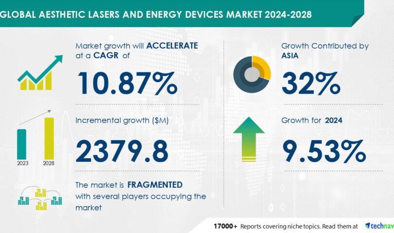 NEW YORK, July 31, 2024 /PRNewswire/ — The global aesthetic lasers and energy devices market size is estimated to grow by USD 2.37 billion from 2024-2028, according to Technavio. The market is estimated to grow at a CAGR of almost 10.87% during the forecast period. Increasing global awareness about medical aesthetics is driving market growth, with a trend towards availability of unconventional treatments. However, high cost of products poses a challenge. Key market players include AbbVie Inc., Aerolase Corp., Alma Lasers Ltd., Bausch Health Companies Inc., Candela Corp., Cutera Inc., El.En. S.p.A., Energist Ltd., Fotona d.o.o, Hologic Inc., Johnson and Johnson Services Inc., Lumenis Be Ltd., Lutronic Inc., Lynton Lasers Ltd., Merz Pharma GmbH and Co KGaA, Photomedex Inc., Sciton Inc., Shanghai Fosun Pharmaceutical Group Co. Ltd., Venus Concept Inc., and Zensar Technologies Inc..