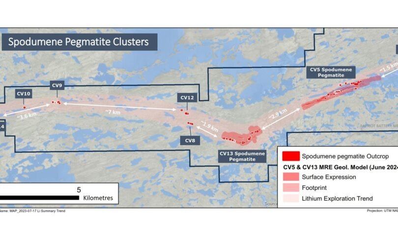 Darren L. Smith, Vice President of Exploration, comments: “This Exploration Target highlights the scale of potential remaining to be assessed by the drill bit at the Shaakichiuwaanaan Project. The Project hosts eight distinct lithium pegmatite clusters along the CV Lithium Trend, of which only three have had meaningful drill testing (CV5, CV13, and CV9) with each remaining open at depth and along strike. The potential for additional lithium pegmatite Mineral Resource the Project continues to hold, as captured by the Exploration Target, is truly remarkable on the global stage.”