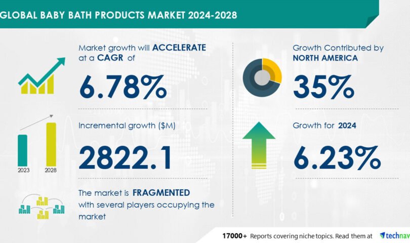 NEW YORK, Aug. 7, 2024 /PRNewswire/ — The global baby bath products market size is estimated to grow by USD 2.82 billion from 2024-2028, according to Technavio. The market is estimated to grow at a CAGR of almost 6.78% during the forecast period. Innovation and portfolio extension leading to product premiumization is driving market growth, with a trend towards increase in offering of multifunctional bath products and bath kits However, decline in birth rate globally poses a challenge. Key market players include Artsana Spa, Beiersdorf AG, Caboo, California Baby, D and G Laboratories Inc., Erbaviva LLC, Farlin Corp., Galderma SA, Honasa Consumer Pvt. Ltd., Johnson and Johnson Services Inc., Laboratoires Expanscience, Me n Moms Pvt ltd., Mothercare Plc, Natera Inc., Pigeon Corp., S.C. Johnson and Son Inc., Sebapharma GmbH and Co. KG, The Clorox Co., The Himalaya Drug Co., and Unilever PLC.
