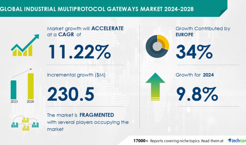 NEW YORK, Aug. 7, 2024 /PRNewswire/ — The worldwide commercial multiprotocol gateways marketplace measurement is estimated to develop through USD 230.5 million from 2024-2028, in step with Technavio. The marketplace is estimated to develop at a CAGR of over 11.22% all through the forecast length. Rising prominence of iot gateways is using marketplace enlargement, with a development against building of system-on-chip for multiprotocol conversation. Alternatively, boundaries created owing to conventional mechanisms poses a problem. Key marketplace gamers come with ABB Ltd., Advantech Co. Ltd., Artila Electronics Co. Ltd, Atop Applied sciences, Cisco Methods Inc., HMS Networks AB, Honeywell World Inc., Intel Corp., World Industry Machines Corp., Kessler Ellis Merchandise, Larsen and Toubro Ltd., Moxa Inc., MSA Protection Inc., Multi Tech Methods Inc., Novus World Inc., Pepperl and Fuchs SE, Samsara Inc., San Telequip Pvt. Ltd., Softing AG, and SWYCS.