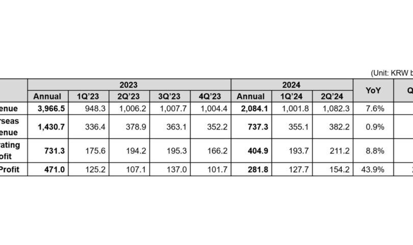 - Second quarter revenue: KRW 1,082.3 billion (+7.6% YoY)