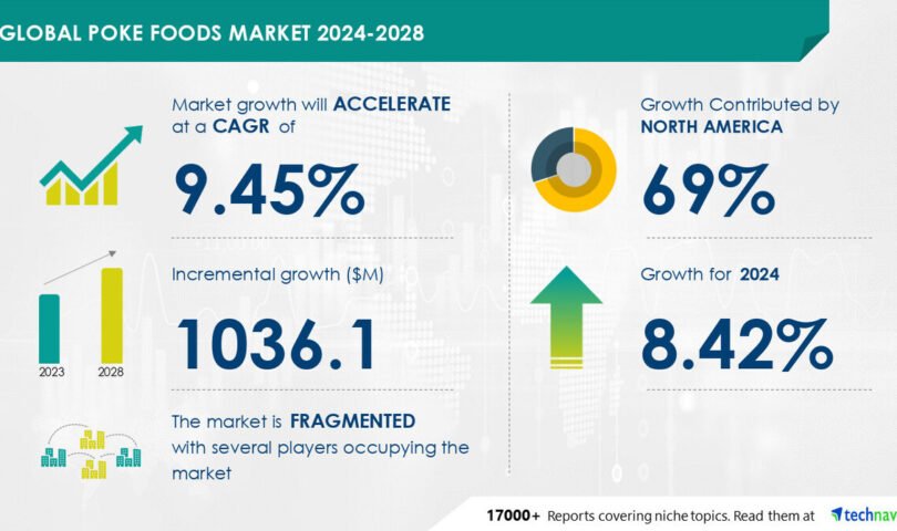 NEW YORK, Aug. 9, 2024 /PRNewswire/ — The global poke foods market size is estimated to grow by USD 1.03 billion from 2024-2028, according to Technavio. The market is estimated to grow at a CAGR of 9.45% during the forecast period. Health benefits of poke foods is driving market growth, with a trend towards rising trend of organic seafood and poke foods. However, rising prices of tuna poses a challenge. Key market players include Acme Smoked Fish Holding Corp., Ahipoki Bowl, ALOHA POKE Co., Annasea Foods Group, FreshFin Poke, HARTFORD POKE Co., HEALTHY POKE SL, ia poke, Island Fin Poke Co., MTY Food Group Inc., OnoPoke Food Shop, Poke Me Group Pty Ltd., POKED, Pokeworks, Red Poke, Sweetfin, THEFISHBOWL, The Poke Co. And wings, The Poke Lab, and White Rabbit Projects.