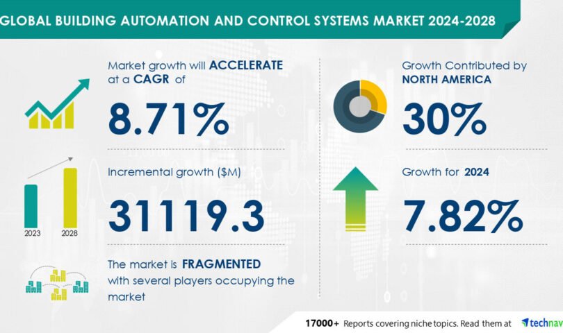 NEW YORK, Aug. 12, 2024 /PRNewswire/ — The global building automation and control systems market size is estimated to grow by USD 31.11 billion from 2024-2028, according to Technavio. The market is estimated to grow at a CAGR of 8.71% during the forecast period. Demand for energy efficiency is driving market growth, with a trend towards increase in use of personnel assistant in residential buildings. However, high installation cost poses a challenge. Key market players include ABB Ltd., Bajaj Electricals Ltd., BuildingLogiX, Emerson Electric Co., Evon Technologies Pvt. Ltd., FORESCOUT, Honeywell International Inc., IoEnergy Inc., Itron Inc., Johnson Controls International Plc., KMC Controls Inc., Legrand, Lutron Electronics Co. Inc., Mode Green Integrated Building Technology, OptergyA, PointGrab Inc., Robert Bosch GmbH, Rockwell Automation Inc., Schneider Electric SE, and Siemens AG.