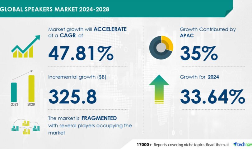NEW YORK, Aug. 14, 2024 /PRNewswire/ — The worldwide audio system marketplace dimension is estimated to develop via USD 325.8 billion from 2024-2028, in step with Technavio. The marketplace is estimated to develop at a CAGR of 47.81% all the way through the forecast duration. Expanding adoption of intriguing audio system is using marketplace enlargement, with a development in opposition to approval for multi-room streaming audio system. Then again, privateness considerations related to intriguing audio system poses a problem. Key marketplace avid gamers come with 3nod Crew, AAC Applied sciences Holdings Ltd., Alphabet Inc., Altec Lansing Inc., Amazon.com Inc., Apple Inc., Bose Corp., Bowers and Wilkins, Fortune Elegant Era Inc., Foster Electrical Co. Ltd., Guangzhou Merry Audio Apparatus Co. Ltd., Koninklijke Philips N.V., Lenovo Crew Ltd., LG Electronics Inc., Panasonic Holdings Corp., Pioneer Bharat Electronics Pvt. Ltd., Premier Tone Answers, Samsung Electronics Co. Ltd., Sony Crew Corp., and Xiaomi Communications Co. Ltd..
