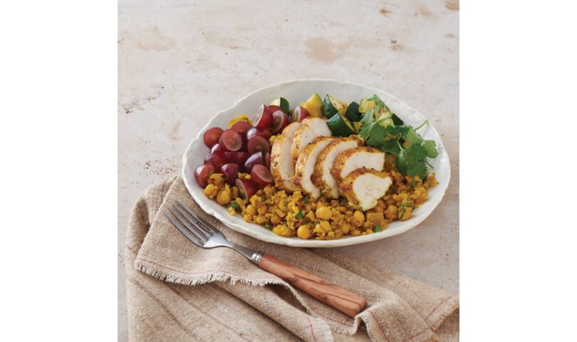 Combinations of these healthy foods can be made into tasty dishes that support brain health such as this Chicken and Grape Cauliflower Rice Bowl, which features fresh Grapes from California alongside grilled chicken, cauliflower, zucchini, garbanzo beans and healthy spices.