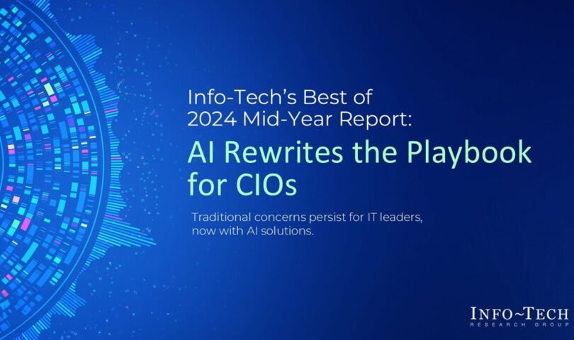 TORONTO, Aug. 20, 2024 /PRNewswire/ – As AI continues to reshape the business landscape, CIOs and IT leaders face unprecedented challenges and opportunities. Reflecting the collective experiences and needs of its global membership, Info-Tech Research Group has released its Best of 2024 Mid-Year Report: AI Rewrites the Playbook for CIOs. This report highlights the top resources that have empowered IT leaders to excel in the first half of the year based on member-driven data such as downloads, usage, analyst calls, and workshops. By emphasizing the tools and insights most used by its members, the report highlights IT’s role in driving innovation, optimizing operations, and aligning IT strategies with business goals in a rapidly changing market.