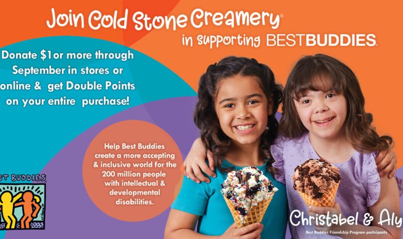 As part of this initiative, Cold Stone® customers can contribute to Best Buddies’ mission by making donations at participating locations. My Cold Stone Club® Rewards members who donate $1 or more in-store or online throughout September will receive Double Points on their entire purchase. Donations will directly benefit the organization’s programs, which empower individuals with IDD to lead fuller, more inclusive lives.