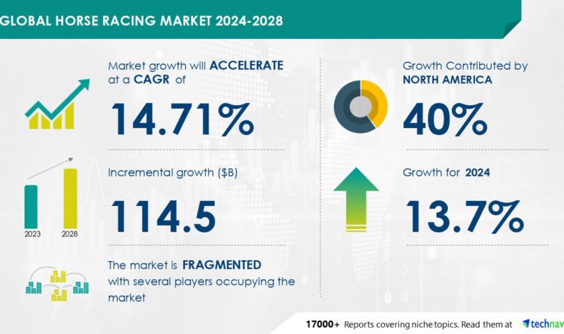 NEW YORK, Sept. 11, 2024 /PRNewswire/ — Report on how AI is driving market transformation- The global horse racing market size is estimated to grow by USD 114.5 billion from 2024-2028, according to Technavio. The market is estimated to grow at a CAGR of 14.71% during the forecast period. Increasing involvement of younger audiences in horse racing is driving market growth, with a trend towards rise in adoption of online betting platforms. However, growing concerns for animal welfare poses a challenge. Key market players include American Horse Company LLC, GALLERY HORSE, Godolphin, Goresbridge Horse Sales, Hemphills Horses, Feed and Saddlery, Inc., Horse Scout Ltd, Horses China, Iron Spring Farm, JCB Horse Sales, LLC, KAMA GODEK, K and L Stables, MFS STUDFARM, Mount St John Equestrian, NorCordia , Platinum Horse Sales, Primi, Royal Horse Farms, Setters Run Farm, VOGLIS RIDING INTERNATIONAL, and Woodcroft Stud.