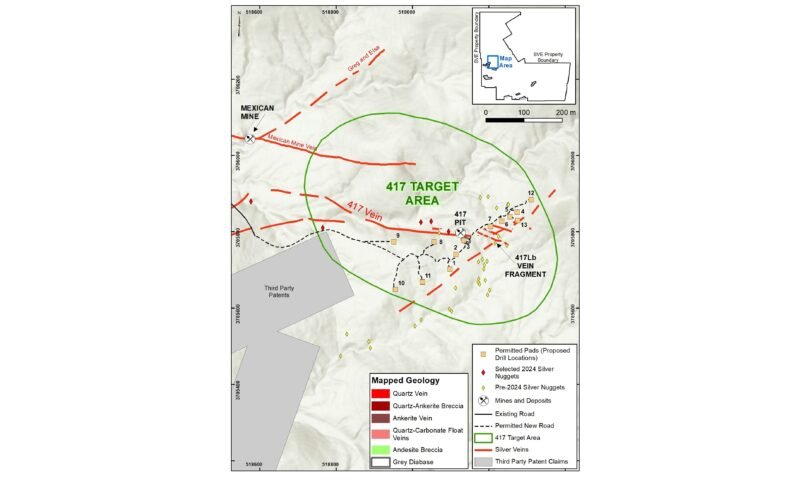DRILL TARGETS INCLUDE VEIN STRUCTURES THAT ARE POTENTIAL SOURCE OF MULTIPLE VEIN FRAGMENTS INCLUDING A 417 POUND NATIVE SILVER-RICH VEIN FRAGMENT