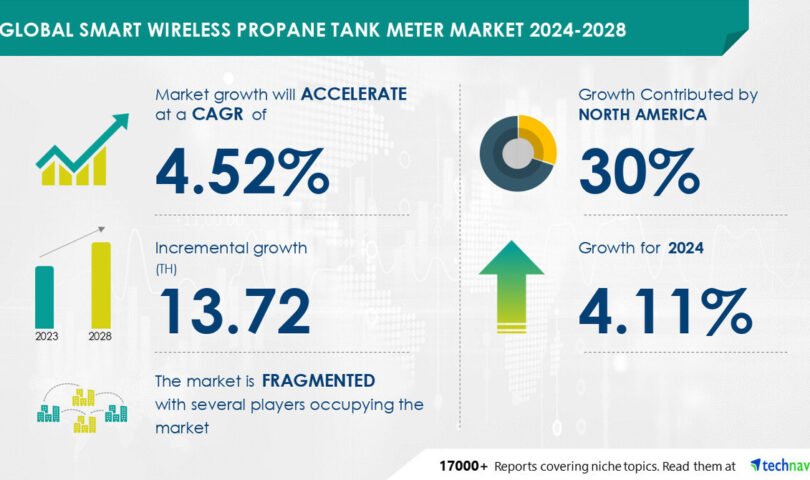 NEW YORK, Sept. 17, 2024 /PRNewswire/ — Document on how AI is redefining marketplace landscape- The worldwide impish wi-fi propane tank meter marketplace measurement is estimated to develop through USD 13.72 Okay from 2024-2028, in keeping with Technavio. The marketplace is estimated to develop at a CAGR of over 4.52% all over the forecast length. Rising operational potency led through emergence of impish wi-fi propane tank meters is using marketplace enlargement, with a development in opposition to expanding adoption of iot and impish house applied sciences. Alternatively, availability of subscription-based propane tank tracking products and services poses a problem. Key marketplace gamers come with AMETEK Inc., Angus Tracking Provider LLC, Danfoss AS, DataOnline Corp., Flame King, Generac Holdings Inc., LCI Industries, Metromatics Pty Ltd., Monnit Corp., Mopeka Merchandise LLC, Rollie Era LLC, Schmitt Industries Inc., Schneider Electrical SE, Splendid Plus Corp., Tank Significance Inc., Thincke Digital Era Co. Ltd., and TVL World LLC.