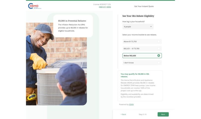 EDEN’s Fast Quote displays for eligibility throughout all to be had rebates—together with IRA HEAR rebates, federal tax credit, native importance incentives, climate and native systems, and municipal rebates—giving house owners complete visibility into the financial savings they will qualify for. Contractors can simply toggle the HEAR rebate detail on or off, relying on their climate’s program availability.