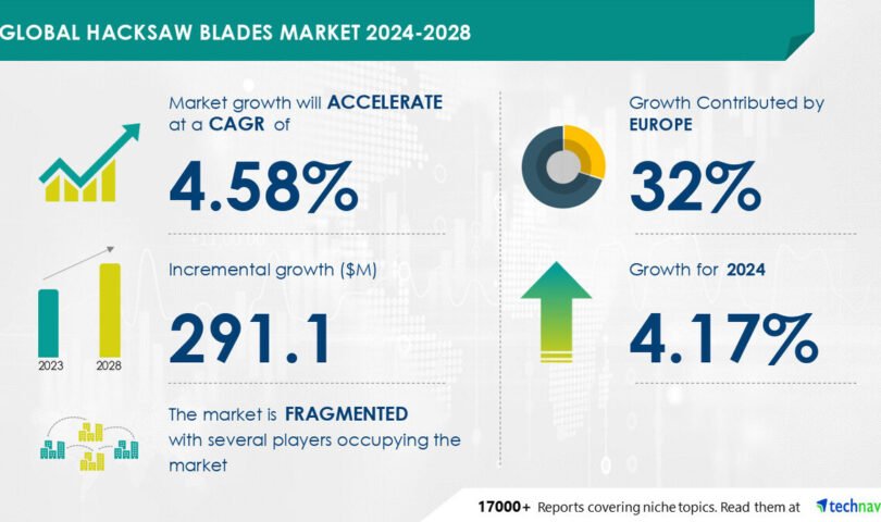 NEW YORK, Sept. 26, 2024 /PRNewswire/ — Document on how AI is using marketplace transformation- The worldwide hacksaw blades marketplace dimension is estimated to develop through USD 291.1 million from 2024-2028, in line with Technavio. The marketplace is estimated to develop at a CAGR of 4.58% all through the forecast duration. Expanding residential and business building is using marketplace enlargement, with a pattern against rising pattern of on-line gross sales. Alternatively, volatility in uncooked subject material costs poses a problem. Key marketplace gamers come with ABM Equipment, Bipico Industries (Equipment) Pvt. Ltd., C. And E. Fein GmbH, Capri Equipment, Chronos, Disston Co., Drill The us, GEDORE Werkzeugfabrik GmbH and Co. KG, Gwalior Equipment Ltd., HABUR SAWS GMBH, Klein Equipment Inc., Magicut Equipment Ltd., Pilana Steel Sro, Robert Bosch GmbH, Sandvik AB, Snap On Inc., Stanley Dim and Decker Inc., Techtronic Industries Co. Ltd., The L.S. Starrett Co., and Thomas Flinn and Co..