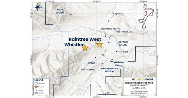 ANCHORAGE, AK, Sept. 30, 2024 /PRNewswire/ – U.S. GoldMining Inc. (NASDAQ: USGO) (“U.S. GoldMining” or the “Company“) is pleased to announce initial assay results from the first two diamond drill holes completed of its 2024 drilling program at the Whistler Gold-Copper Project (the “Project“) in Alaska, U.S.A., which commenced in late June 2024. The results reported in this news release include WH24-01 drilled within the Raintree West Open Pit Deposit and the re-entry extension of drill hole WH23-03 within the Whistler Deposit.