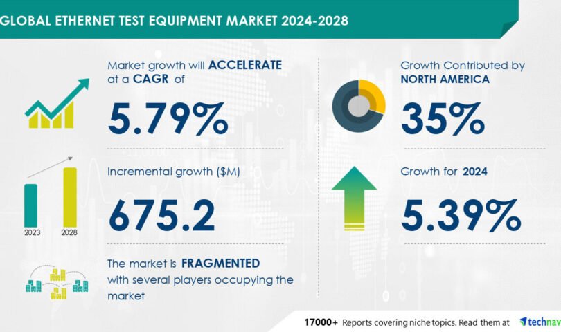 NEW YORK, Oct. 1, 2024 /PRNewswire/ — Record on how AI is riding marketplace transformation – The worldwide ethernet check apparatus marketplace dimension is estimated to develop by way of USD 675.2 million from 2024-2028, consistent with Technavio. The marketplace is estimated to develop at a CAGR of about 5.79% throughout the forecast length. Emerging call for for high-speed ethernet is riding marketplace expansion, with a pattern in opposition to emergence of new-generation energy over ethernet: ieee802.3bt On the other hand, intense pageant poses a problem – Key marketplace gamers come with Accedian Networks Inc., Agilent Applied sciences Inc., Anritsu Corp., Beijing Xinertel Era Co. Ltd., EXFO Inc., GAO Crew Inc., GL Communications Inc., IDEAL INDUSTRIES Inc., Keysight Applied sciences Inc., Marvell Era Inc., NetScout Techniques Inc., Sifos Applied sciences Inc., Silvertel, Spirent Communications plc, TE Connectivity Ltd., Teledyne Applied sciences Inc., VeEX Inc., Viavi Answers Inc., Xena Networks ApS, and Yokogawa Electrical Corp..
