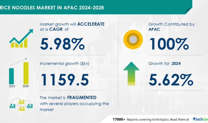 NEW YORK, Oct. 7, 2024 /PRNewswire/ — Report with the AI impact on market trends- The global rice noodles market in APAC size is estimated to grow by USD 1.15 billion from 2024-2028, according to Technavio. The market is estimated to grow at a CAGR of over 5.98% during the forecast period. Increasing demand for gluten-free products in APAC is driving market growth, with a trend towards variety of flavors available in rice noodles. However, increasing launches of other varieties of noodles in APAC poses a challenge. Key market players include Acecook Vietnam Joint Stock Co., Bich Chi Food Co., FodShop Pty Ltd., Foodle Noodle Co. Ltd., Greenature Grains and noodle Co. Ltd., Kenmin Foods Co. Ltd., Kikkoman Corp., King Soba, Leong Guan Food Manufacturer Pte Ltd., Lieng Tong Rice Vermicilli Co. Ltd., Molina and Sons Phils. Inc., Nongshim Co. Ltd., Q Phil International Trading, SA GIANG, Sapporo Products Inc., Suzhou Joywell Taste Co. Ltd., Thai President Foods Public Co. Ltd., Thaitan Foods International Co. Ltd., Vietnam Food Technology Joint Stock Co., and Woodland Foods Ltd..