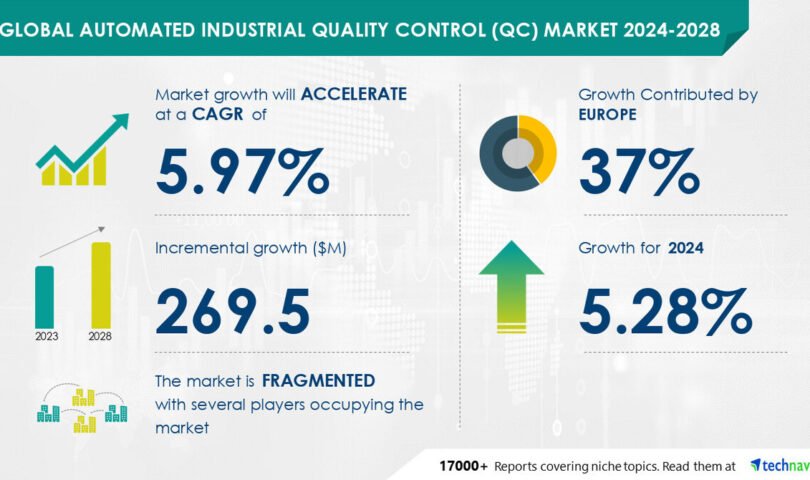 NEW YORK, Oct. 9, 2024 /PRNewswire/ — Report with market evolution powered by AI – The Global Automated Industrial Quality Control (QC) Market size is estimated to grow by USD 269.5 million from 2024-2028, according to Technavio. The market is estimated to grow at a CAGR of 5.97% during the forecast period. Growing importance of accuracy in quality control processes is driving market growth, with a trend towards reshoring of manufacturing industry. However, lack of effective interoperability poses a challenge – Key market players include ABB Ltd., ATS Automation Tooling Systems Inc., Carl Zeiss Stiftung, Emerson Electric Co., General Electric Co., Honeywell International Inc., IVISYS, KEYENCE CORP., MasterControl Solutions Inc., Mitsubishi Electric Corp., NANOTRONICS IMAGING INC., OMRON Corp., Renishaw Plc, RNA Automation Ltd., Rockwell Automation Inc., Schneider Electric SE, Shelton Machines Ltd., Siemens AG, Texas Instruments Inc., and Yokogawa Electric Corp..