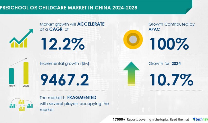 NEW YORK, Oct. 16, 2024 /PRNewswire/ — Report on how AI is redefining market landscape – The Preschool or Childcare Market in China size is estimated to grow by USD 9.47 billion from 2024-2028, according to Technavio. The market is estimated to grow at a CAGR of 12.2% during the forecast period. Established and international players have pricing leverage is driving market growth, with a trend towards increase in educational expenditure in chinese households. However, covid-19 pandemic-like scenarios may hinder growth poses a challenge – Key market players include 3E International School, Beanstalk Education Group, Canadian International School of Beijing, Crestar Education Group, Etonkids International Educational Group, Fortune Kindergarten, Golden Apple Education Investment Group Co. Ltd, Ivy Education Group, Montessori School of Shanghai, Muffys International Kindergarten, Noah Education Holdings Ltd., RYB Education, Shanghai American School, Soong Ching Ling School, The International Montessori School, and Yew Chung International School of Shanghai.