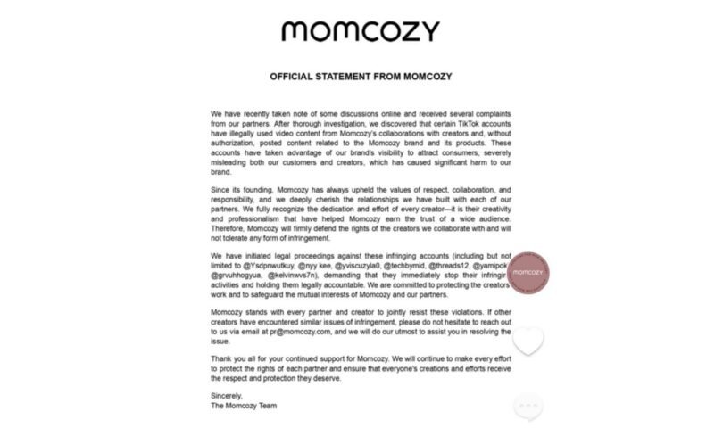 Since its founding, Momcozy has consistently upheld the core values of respect, collaboration, and responsibility, and cherishes its relationships with each creator. The company understands the significant role creators play in the brand’s success; it is their creativity and professionalism that have helped Momcozy earn the trust of a wide audience. To this end, Momcozy has not only taken legal action to defend the rights of creators but also continues to deepen its collaboration with creators and the mothering community through ongoing projects and activities.