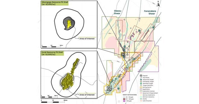 Core Branch of Hobby: The Koné and Gbongogo deposits, in line with a US$2,500/ounces pit-shell, plus a 500-meter boundary as proven in Determine 1 under, to effect Montage preserving important exploration upside as greater than 50 exploration goals were known at the quality.