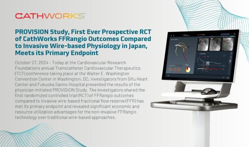 WASHINGTON, Oct. 27, 2024 /PRNewswire/ — Today at the Cardiovascular Research Foundation’s annual Transcatheter Cardiovascular Therapeutics (TCT) conference taking place at the Walter E. Washington Convention Center in Washington, DC, investigators from Gifu Heart Center and Fukuoka Sanno Hospital presented the results of the physician-initiated PROVISION1 Study. The investigators shared the first randomized controlled trial (RCT) of FFRangio outcomes compared to invasive wire-based fractional flow reserve (FFR) has met its primary endpoint and revealed significant economic and resource utilization advantages for the non-invasive FFRangio technology over traditional wire-based approaches.