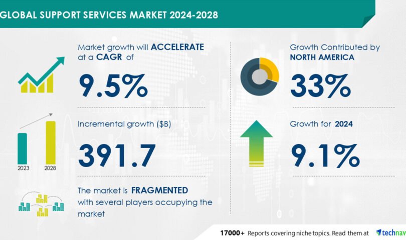 NEW YORK, Oct. 28, 2024 /PRNewswire/ — Document with the AI affect on marketplace traits – The World Assistance Services and products Marketplace measurement is estimated to develop through USD 391.7 billion from 2024-2028, in line with Technavio. The marketplace is estimated to develop at a CAGR of 9.5% all the way through the forecast duration. Expanding call for for backup products and services from flight trade is riding marketplace progress, with a development against emerging adoption of AI fashions in backup products and services. Then again, cases of technological disruptions in operation of backup products and services poses a problem.Key marketplace gamers come with ABB Ltd., Apple Inc., Broadcom Inc., Cisco Programs Inc., Dell Applied sciences Inc., FUJIFILM Corp., HCL Applied sciences Ltd., Infosys Ltd., Integra World Answers Corp, Global Trade Machines Corp., Lenovo Crew Ltd., Markel Corp., Microsoft Corp., myairops, Panasonic Holdings Corp., Quatrro Inc., S and P World Inc., Samsung Electronics Co. Ltd., SAP SE, Toshiba Corp., Wipro Ltd., and Zenoti.