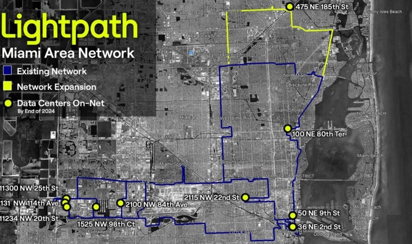 Lightpath’s original community enlargement within the Miami discipline contains including 8 pristine records facilities to its community, for a complete of 12 on-net records facilities by way of the tip of 2024. Lightpath will probably be providing RapidPath dim fiber between Miami records facilities, with pre-spliced inter-data middle fiber spans able for ultra-fast deployment. As well as, the corporate is development a pristine, 15-mile enlargement of high-fiber depend, subterranean community towards North Miami Seashore and west to Miami Fields.