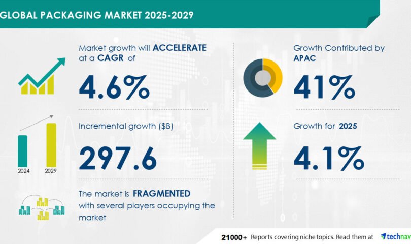 NEW YORK, Jan. 13, 2025 /PRNewswire/ — The global packaging market size is estimated to grow by USD 297.6 billion from 2025 to 2029, according to Technavio. The market is estimated to grow at a CAGR of 4.6% during the forecast period.