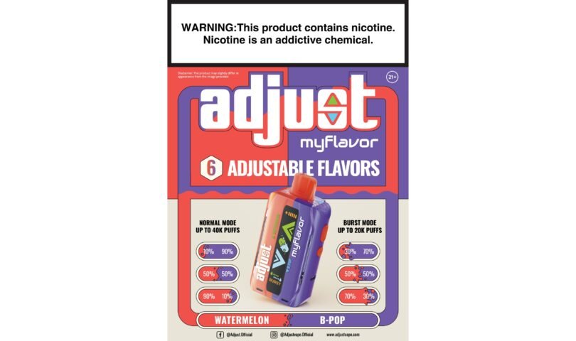 MIAMI, Jan. 17, 2025 /PRNewswire/ — Adjust, a vaping explorer, today in the US introduces myFlavor, a single-use vape offering a customizable dual-flavor experience. myFlavor sets itself apart by mixing two flavors in different ratios, catering to diverse palates.