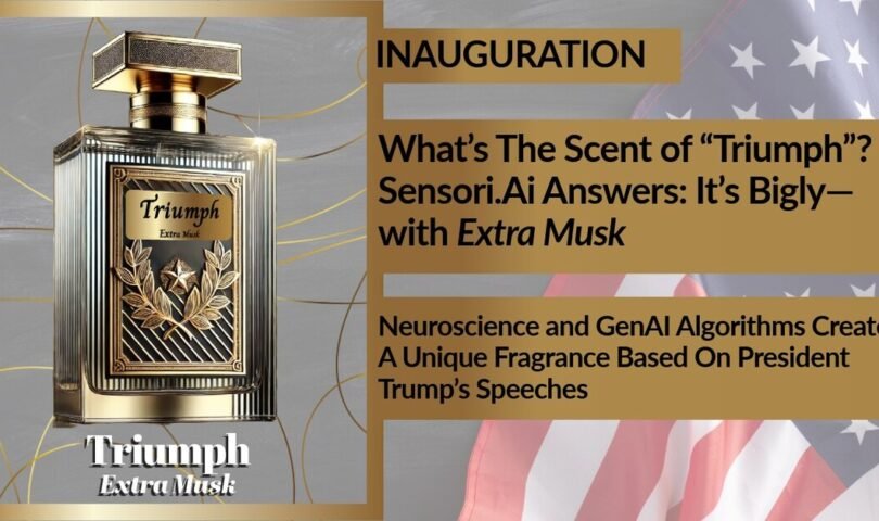BERKELEY, Calif., Jan. 19, 2025 /PRNewswire/ — What scent memories are triggered in voters’ nonconscious minds when they hear President Trump’s speeches? Top notes of Green Grass and Spices, with middle notes of Leather, Vetiver, Cypriol Oil, and Rose, with a base of Amber and Musk combine to produce what Sensori.Ai has labeled “Triumph”—a unique fragrance based upon the texts of the incoming President’s public remarks.