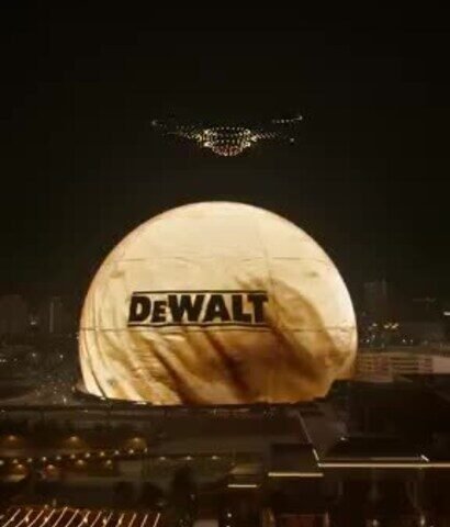 The DEWALT activation on Sphere’s Exosphere, featuring drones and viewable from vantage points throughout the city, launches a new concrete campaign for the brand: Built for the Unbreakable.
