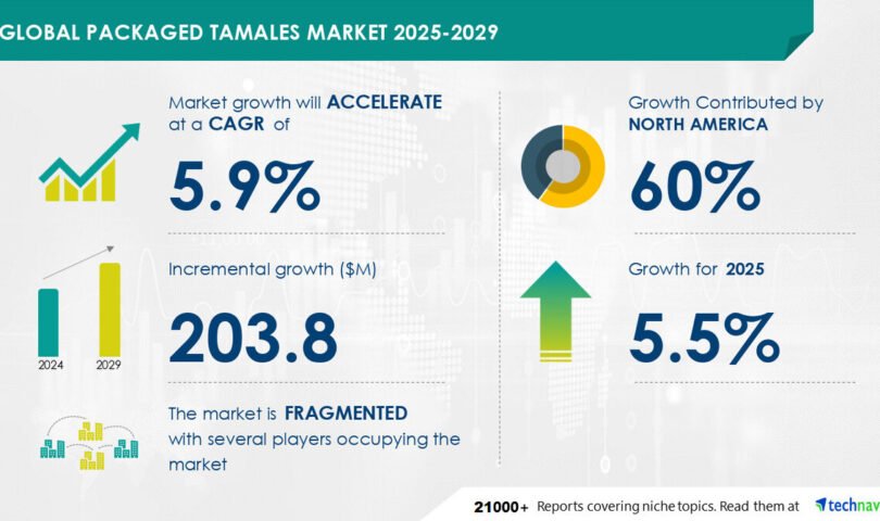 NEW YORK, Feb. 6, 2025 /PRNewswire/ — Report on how AI is driving market transformation – The global packaged tamales market size is estimated to grow by USD 203.8 million from 2025-2029, according to Technavio. The market is estimated to grow at a CAGR of 5.9% during the forecast period. Growing popularity of latin american cuisines is driving market growth, with a trend towards growing popularity of food ordering through online portals and mobile apps. However, increasing at-home preparation of tamales poses a challenge. Key market players include ALPHA FOODS, Bueno Foods, Capra Foods LLC, Costco Wholesale Corp., Del Real LLC, HEB LP, Hormel Foods Corp., Mi Casa Tamales, Ruiz Food Products Inc., S.C. Johnson and Son Inc., Supreme Tamale Co., TAMAHLI, Tamale Addiction, Tastes Better From Scratch, Texas Lone Star Tamales, Texas Tamale Co., Todos los derechos reservados La Costena, Tucson Tamale, Valley Markets Inc., and XLNT Foods Corp..