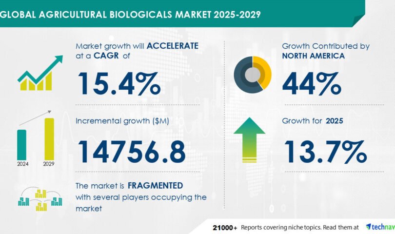 NEW YORK, Feb. 11, 2025 /PRNewswire/ — Report with the AI impact on market trends – The agricultural biologicals market and it is set to grow by USD 14.76 billion from 2025 to 2029. However, the growth momentum will progressing at a CAGR of almost 15.4% during the forecast period, according to Technavio. The agricultural biologicals market is fragmented, and the vendors are seeking strong partnerships with automotive, industrial, and commercial companies to compete in the market. Agrinos AS, Andermatt Group AG, BASF SE, Bayer AG, Biological Products Industry Alliance, Certis USA LLC, Evogene Ltd., Gowan Co., Koppert, Novozymes AS, PI Industries Ltd., Pro Farm Group Inc., PROBELTE SAU, SEIPASA SA, SOM Phytopharma India Ltd., Syngenta Crop Protection AG, T.Stanes and Co. Ltd., UPL Ltd., Valent BioSciences LLC, and Vegalab SA are some of the major market participants -. To know about the vendor offerings – Request a sample report