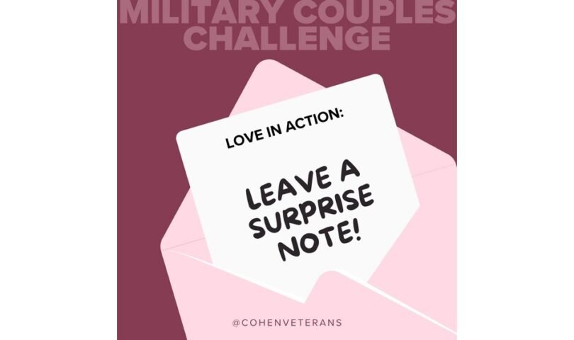 The CVN #MilitaryCouplesChallenge is helping military couples incorporate small yet meaningful acts into their daily lives. Curated by CVN mental health experts, this challenge is packed with practical tips and ideas to help military couples strengthen their bond, foster connection, and grow together. Learn more at cohenveteransnetwork.org/couples.