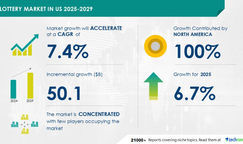 NEW YORK, Feb. 12, 2025 /PRNewswire/ — Report on how AI is redefining market landscape – The Lottery market in US size is estimated to grow by USD 50.1 billion from 2025-2029, according to Technavio. The market is estimated to grow at a CAGR of 7.4% during the forecast period. Growing adoption of marketing strategies to increase ticket sales is driving market growth, with a trend towards emergence of advanced technologies. However, socioeconomic impact of lotteries poses a challenge. Key market players include Arizona Lottery, Connecticut Lottery Corp., International Game Technology plc, INTRALOT SA, Jackpocket LLC, Lottery Now Inc, Pollard Banknote Ltd., and Scientific Games LLC.