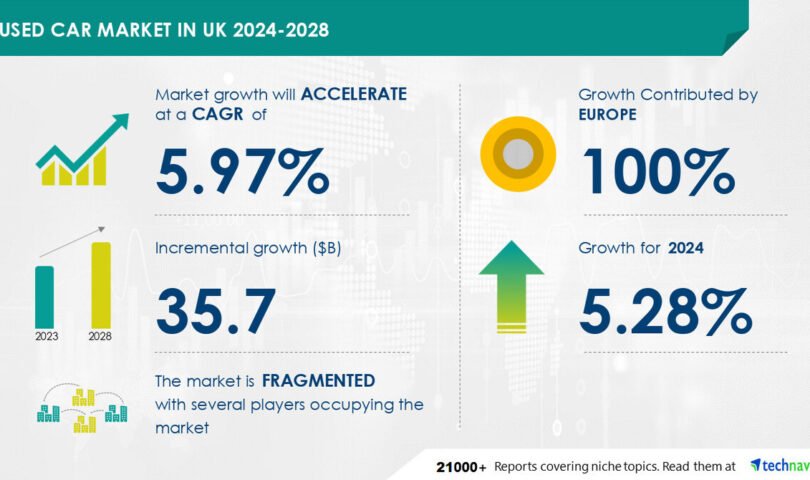NEW YORK, Feb. 12, 2025 /PRNewswire/ — Report on how AI is redefining market landscape – The used car market in uk size is estimated to grow by USD 35.7 billion from 2024-2028, according to Technavio. The market is estimated to grow at a CAGR of 5.97% during the forecast period. Excellent value for money proposition of used cars is driving market growth, with a trend towards improved touchpoint management. However, increasing preference for car subscription services poses a challenge. Key market players include Alibaba Group Holding Ltd., Aramis Group, Arnold Clark Automobiles Ltd., Auto Trader Group Plc, Bauer Media Group, Car Giant Ltd., Carcraft.co.UK, CarGurus Inc., CarMax Inc., Cazoo Ltd., Cinch Cars Ltd., Constellation Automotive Group Ltd., Group 1 Automotive Inc., Hertz Holdings Inc., Lithia Motors Inc., McCarthy Cars UK Ltd., Motors.co.UK Ltd., Penske Corp., Toyota Motor Corp., and TrueCar Inc..