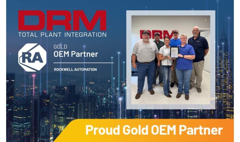 DRM, LLC has been named a Rockwell Automation Gold OEM Partner, recognizing the company’s capabilities as an equipment builder with proven expertise in control systems, safety architecture, drives, and operator interfaces.