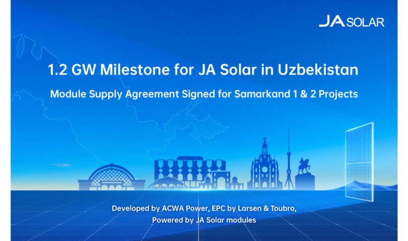 BEIJING, Nov. 6, 2025 /PRNewswire/ — JA Solar, a trusted global partner in green energy, signed a module supply agreement with Larsen & Toubro (L&T), the EPC contractor for the Samarkand 1 and 2 Solar PV Power Plants in Uzbekistan. Under the contract, JA Solar will supply all of the photovoltaic modules for the two utility-scale projects, reinforcing its role as a key solution provider in Central Asia’s energy transition.