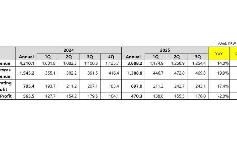 • Third quarter revenue: KRW 1,254.4 billion (+14.0% YoY)