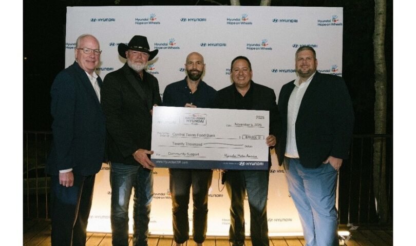 AUSTIN, Texas, Nov. 7, 2025 /PRNewswire/ — Hyundai Motor America, in partnership with Hyundai Hope on Wheels and South Point Hyundai, reaffirmed its commitment to children’s health in Austin through two impactful donations. A $20,000 donation to the Central Texas Food Bank (CTFB) will help expand hunger relief programs for local families, while a $20,000 donation to Dell Children’s Medical Center of Central Texas will strengthen pediatric cancer care and support services.