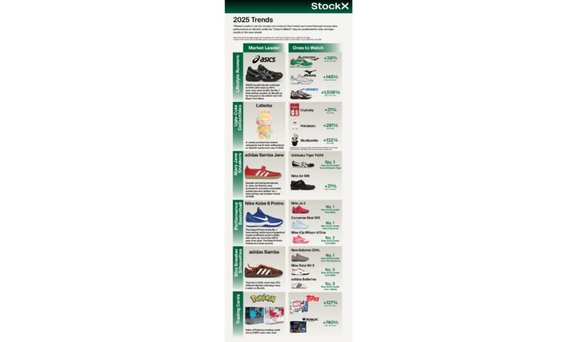 “StockX’s market data gives us a front-row seat to global shifts in taste and culture. From the rise of performance basketball to the continued dominance of slim models and runner-inspired silhouettes, these trends reflect the ways people are expressing themselves through what they wear and collect,” said StockX CEO Greg Schwartz. “This latest report tells an exciting story about how rapidly new communities are forming—whether around digital cameras, Pokémon trading cards, or collectibles like Labubu. The energy of our customers and the passion they have for the product continues to shape what’s next.”
